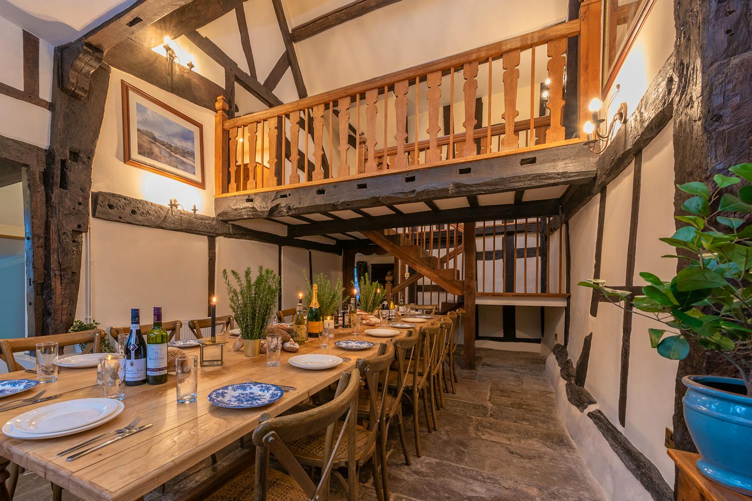 Luntley Court: Above the dining room there's a galleried landing -