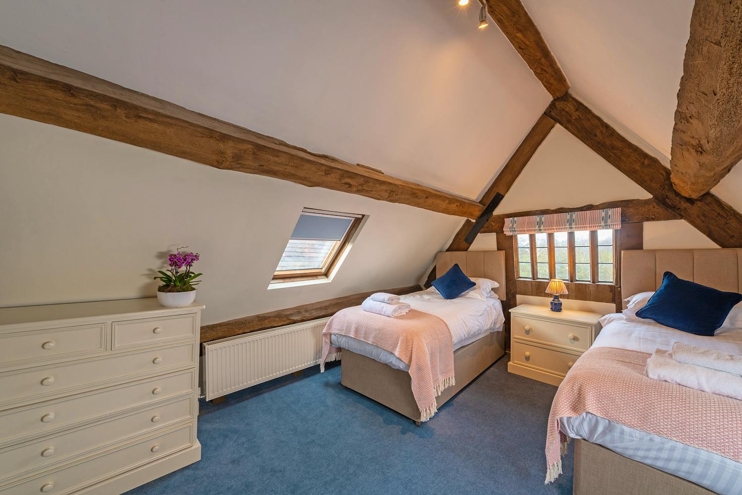 Luntley Court: Bedroom 5 is a twin room up on the top floor of the house -
